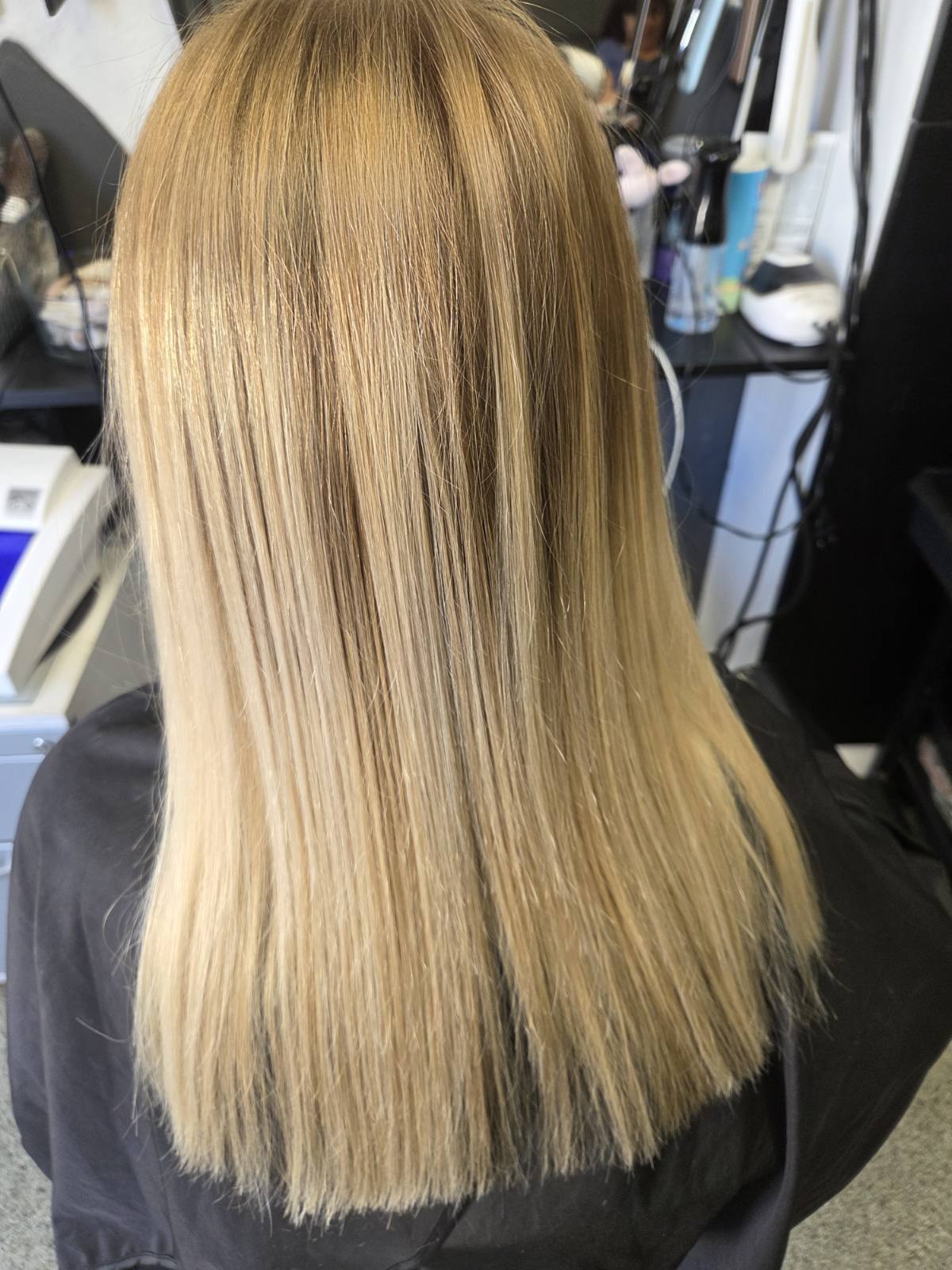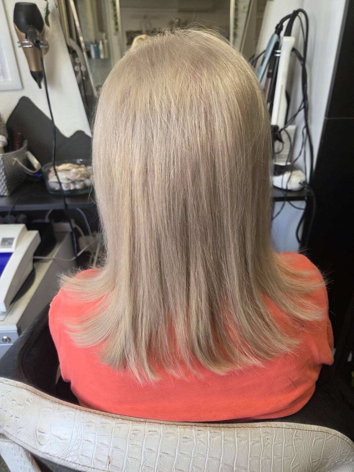 Ideális minden olyan szolgáltatás után, ahol a hajat hajszárítóval, vasalóval vagy hajsütővel formázzuk – különösen balayage, szőkítés vagy platina árnyalatok fixálásához.