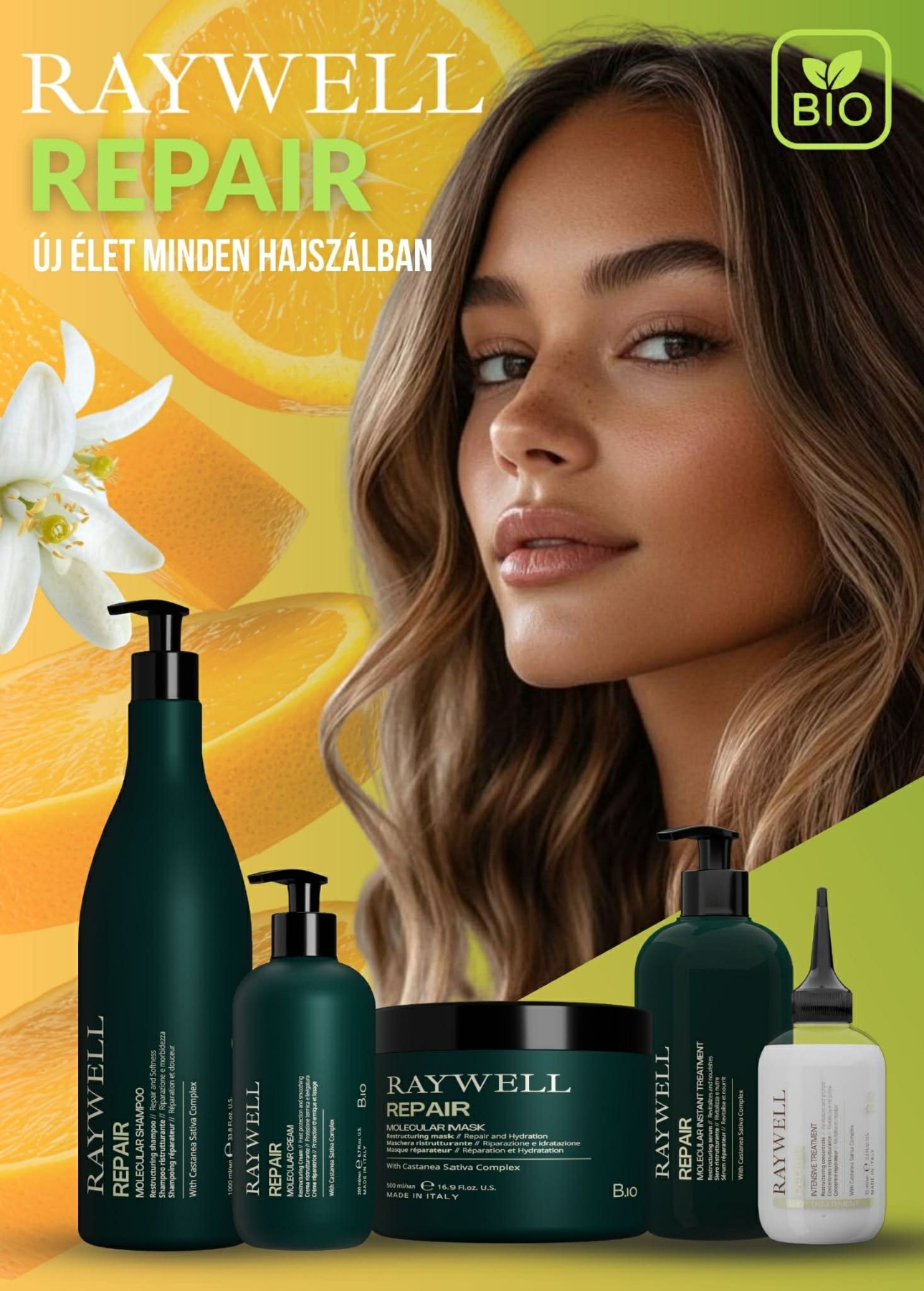 Az új Raywell B.IO Repair termékekkel személyre szabható, professzionális hajrituálék alakíthatók ki, a vendég egyedi igényeihez igazítva. A kombinálható, innovatív formulák lehetővé teszik a célzott regenerálást és a maximális hatékonyságot – szalonminőségű páratlan eredménnyel.
