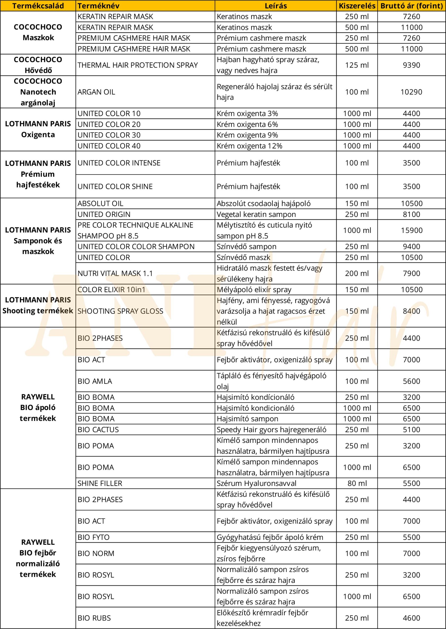 A termékeket személyesen a 1142 Budapest, Erzsébet Királyné útja 63. szám alatti Anihair szalonban lehet megvásárolni!